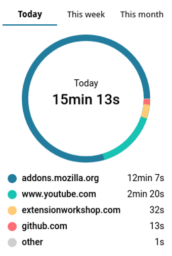 Browser Screen Time är en användbar tillägg för Firefox som hjälper användare att hålla koll på sin internetanvändning. Med en enkel och tydlig graf kan man se hur mycket tid som spenderas online, antingen under en specifik dag eller inom ett valt tidsintervall. Denna funktion gör det lättare att förstå och analysera sina surfvanor utan krångel.